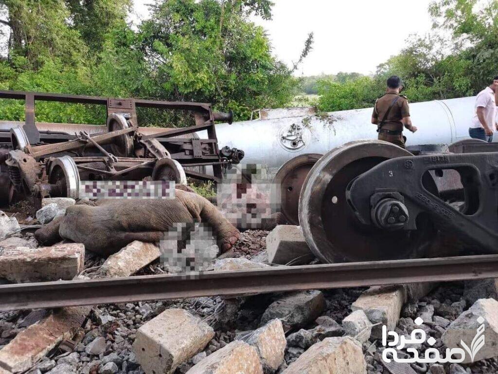 خروج قطار از ریل پس از برخورد با فیلهای وحشی