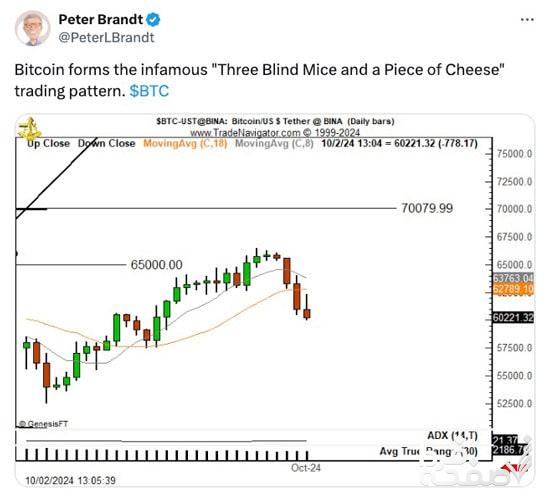 برانت همچنین در پست دیگری هشدار داد که افزایش اخیر بیتکوین نتوانسته است الگوی نزولی ۷ ماههاش را تغییر دهد و برای تأیید پایان این روند نزولی، باید قیمت بالای ۷۱ هزار دلار تثبیت شود.