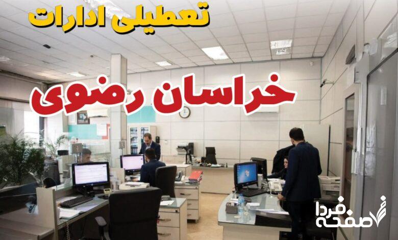 ۱. دلیل احتمالی تعطیلی ادارات استان خراسان رضوی چیست؟