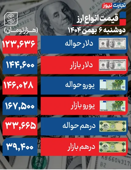 درهم امارات در معاملات امروز بازار با افزایش اندک نسبت به روز گذشته، روی رقم ۳۹ هزار و ۴۰۰ تومان قرار گرفت. یورو نیز با رقم ۱۶۷ هزار و ۵۰۰ تومان معامله می‌شود. حواله دلار در مرکز مبادله روی رقم ۱۲۳ هزار و ۶۳۶ تومان ایستاد و نسبت به روز گذشته افزایش نسبی داشت.