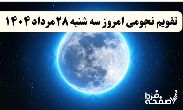 تقویم نجومی سه شنبه /تقویم همسران سه شنبه ۲۸ مرداد ۱۴۰۴| تقویم نجومی امروز بیست و هشتم مرداد ۱۴۰۴