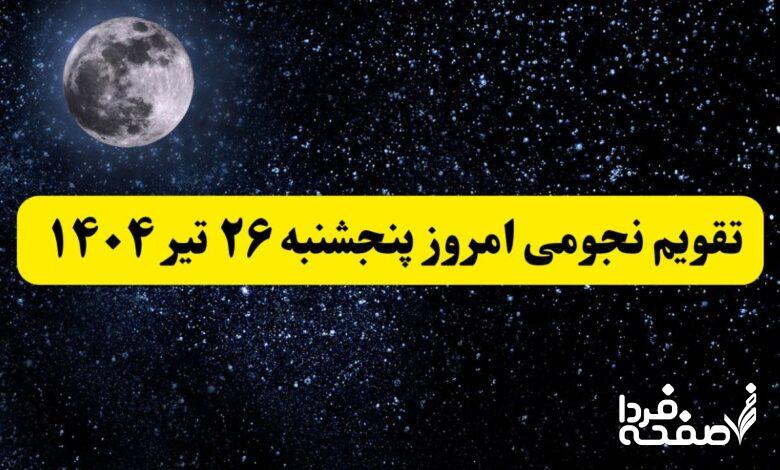 تقویم نجومی پنجشنبه| تقویم همسران پنجشنبه ۲۶ تیر ۱۴۰۴| تقویم نجومی امروز بیست و ششم تیر ۱۴۰۴