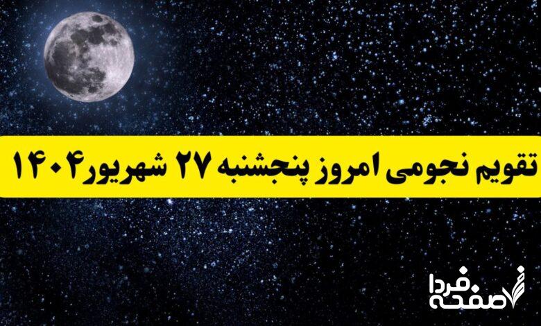 تقویم نجومی پنجشنبه ۲۷ شهریور ۱۴۰۴| تقویم همسران بیست و هفتم شهریور ۱۴۰۴