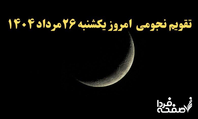 تقویم نجومی یکشنبه| تقویم همسران یکشنبه ۲۶ مرداد ۱۴۰۴| ساعت سعد و نحس امروز بیست و ششم مرداد ۱۴۰۴