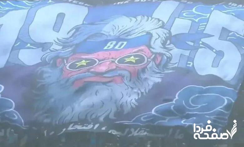 در این طرح، تصویر پیرمردی با محاسن سفید و عینکی مزین به دو ستاره طلایی، نماد قهرمانیهای استقلال در آسیا، نقش بسته بود و شعار «ما استقلالیم، افتخار ۸۰ ساله ایران» سکوها را مزین کرد؛ نمایشی که بار دیگر عظمت تاریخی آبیها را به رخ کشید.