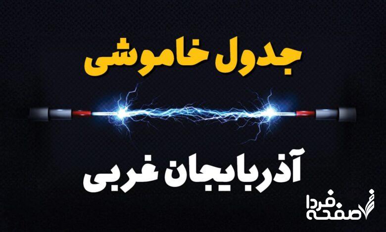 در جدول اعلام‌شده، قطعی برق ارومیه، قطعی برق خوی، قطعی برق مهاباد، سلماس، بوکان، میاندوآب، پیرانشهر و نقده پیش‌بینی شده است. این خاموشی‌ها به صورت دوره‌ای و نوبتی در مناطق مختلف استان اجرا خواهد شد.