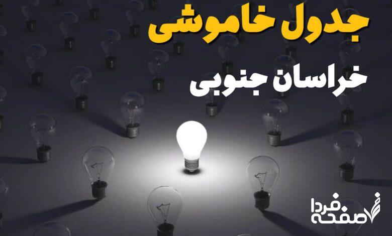 جدول خاموشی برق خراسان جنوبی فردا یکشنبه ۱۴ اردیبهشت ۱۴۰۴ | زمان قطعی برق بیرجند یکشنبه ۱۴ اردیبهشت ۱۴۰۴