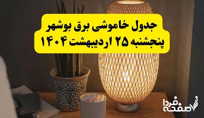 جدول قطعی برق بوشهر پنجشنبه ۲۵ اردیبهشت ۱۴۰۴
