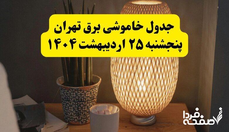 جدول قطعی برق تهران پنجشنبه ۲۵ اردیبهشت ۱۴۰۴