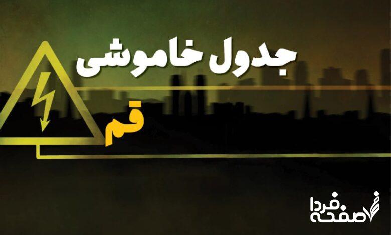 جدول قطعی برق قم یکشنبه ۱۶ شهریور ۱۴۰۴