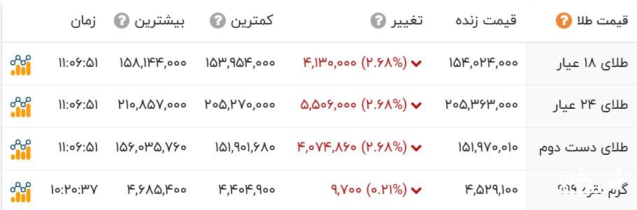 قیمت طلای دست دوم نیز با ۴۰۰ هزارتومان کاهش به ۱۵۱ میلیون تومان رسید.