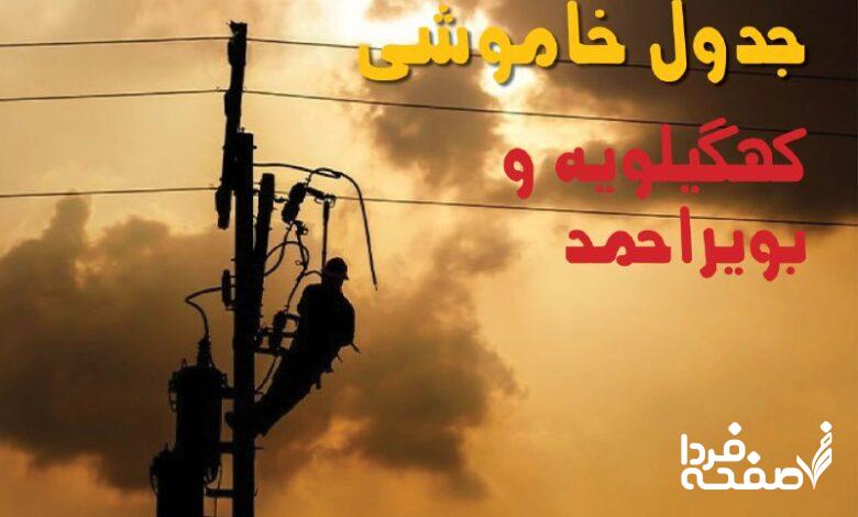 جدول قطعی برق استان کهگیلویه و بویراحمد شنبه ۲۲ شهریور ۱۴۰۴
