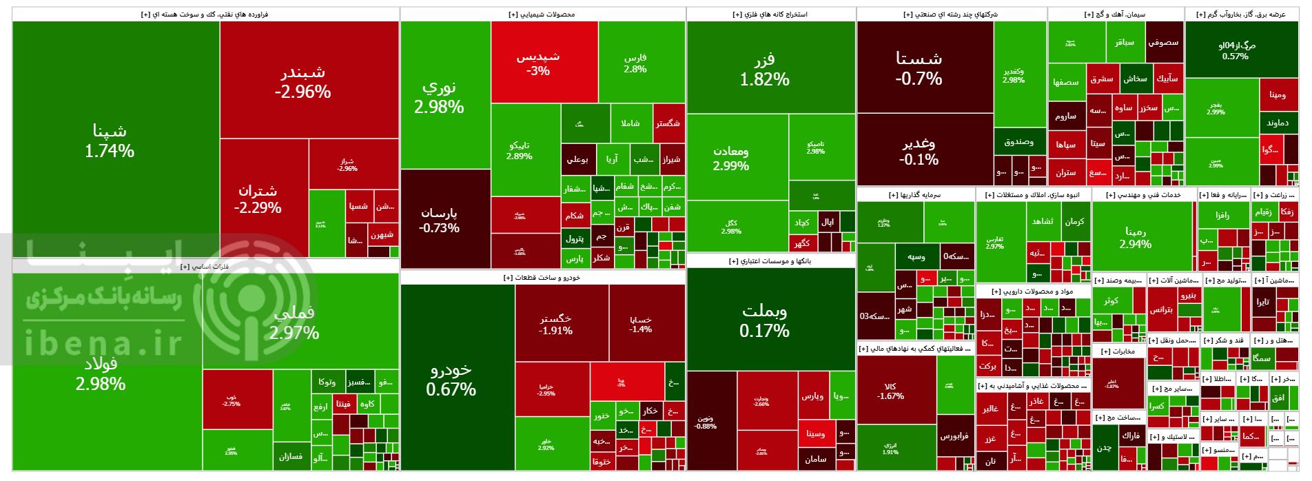 در مقابل نمادهای شپدیس و شبندر بیشترین تاثیر منفی را بر شاخص کل بازار سهام برجای گذاشتند.