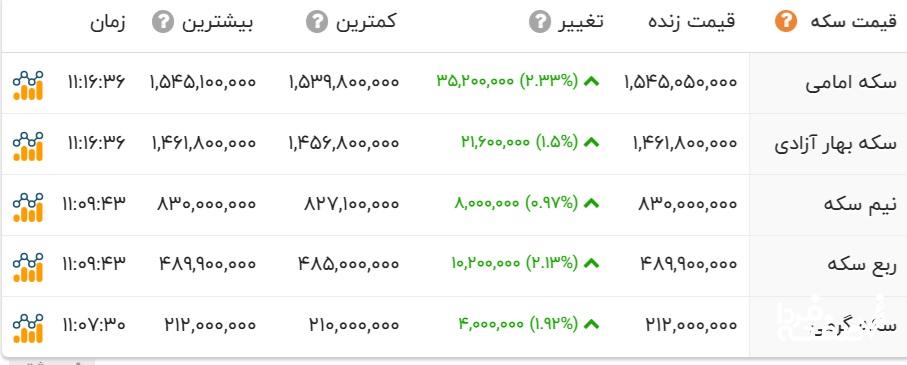 قیمت سکه بهار آزادی ۲ میلیون و ۱۶۰ هزارتومان و ۱۴۶ میلیون رسید.