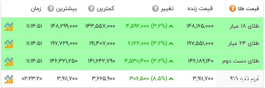 قیمت طلای دست دوم نیز ۱۴ میلیون و ۶۱۸ هزارتومان رسید.