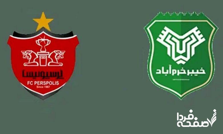 تیمهای فوتبال پرسپولیس تهران و خیبر خرمآباد در چارچوب دیدار هفته هفتم لیگبرتر فوتبال ایران از ساعت ۱۸:۱۵ _شنبه بیستوششم مهر_ در ورزشگاه تختی خرمآباد مقابل یکدیگر صفآرایی خواهند کرد.