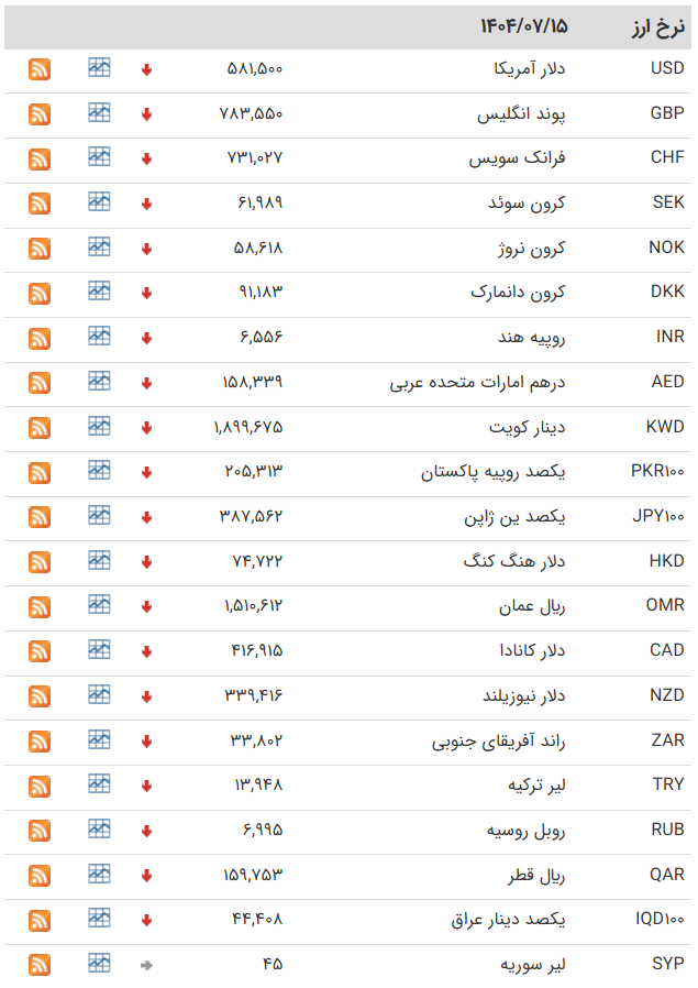 لیر ترکیه | TRY | ۱۷,۲۰۸ | ۱۷,۳۶۴ | -۶ | ۱۶,۷۰۷ | ۱۶,۸۵۹ | -۵ |