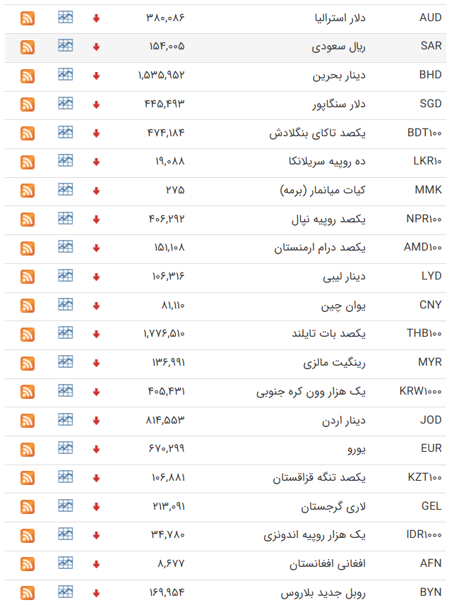 از سوی دیگر، اسکناس درهم امارات نیز با ثبات نسبت به روز کاری گذشته، ۱۹ هزار و ۷۴۰ تومان ارزش‌گذاری شده است و نرخ حواله درهم نیز ۱۹ هزار و ۱۶۵ تومان است.