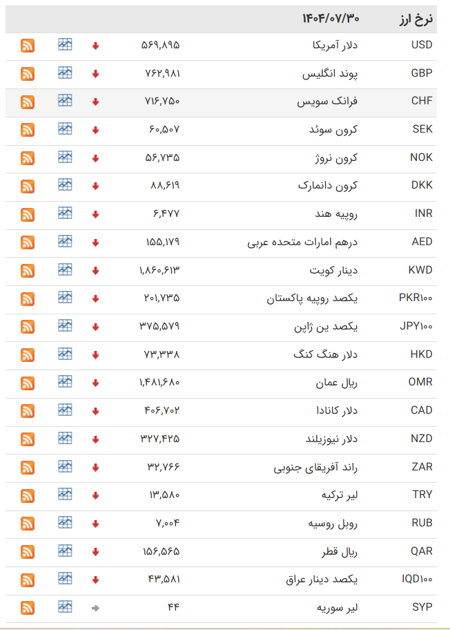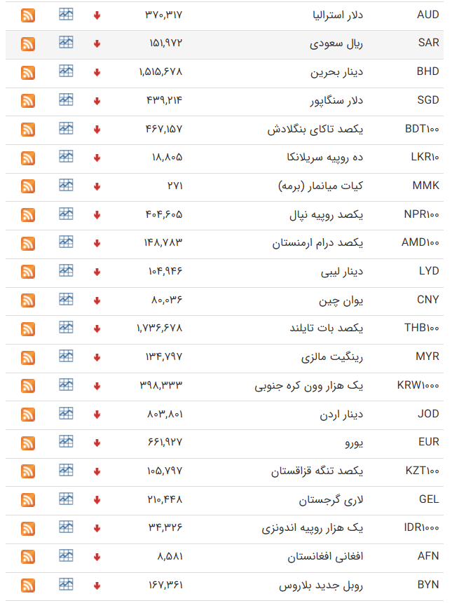 از سوی دیگر، اسکناس درهم امارات نیز با کاهش نسبت به روز کاری گذشته، ۱۹ هزار و ۷۱۳ تومان ارزش‌گذاری شده است و نرخ حواله درهم نیز ۱۹ هزار و ۱۳۹ تومان است.