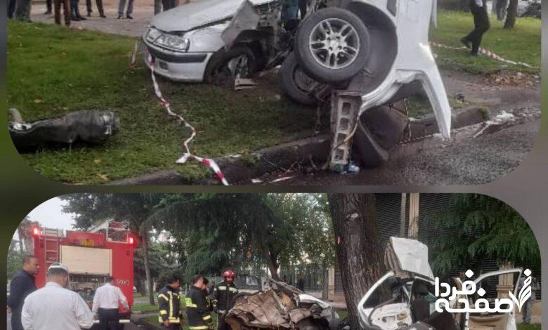 نصف شدن پژو پارس در برخورد با درخت+ تصویر