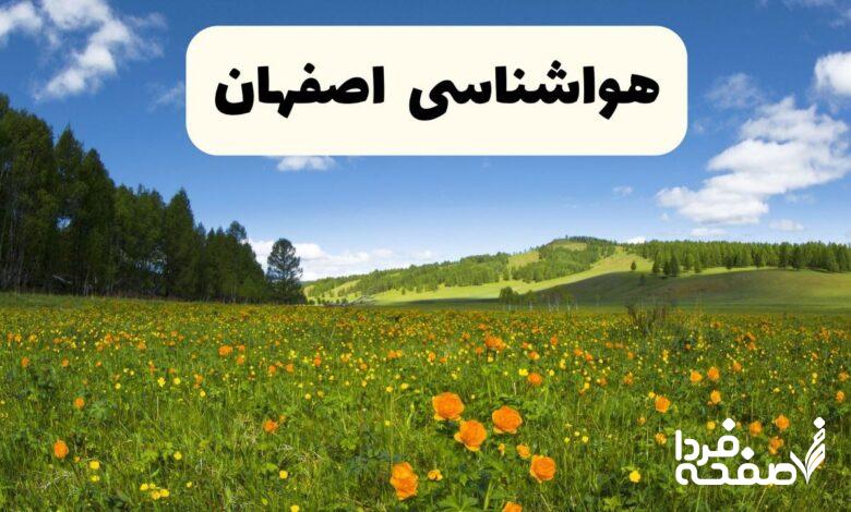 فردا در استان اصفهان هوایی گرم، آفتابی و نسبتا خشک پیش‌بینی می‌شود. آسمان بیشتر نقاط استان صاف و بدون ابر خواهد بود و خبری از بارش باران نیست. دمای هوا در طول روز افزایش می‌یابد و در ساعات ظهر و بعدازظهر به بیشترین حد خود می‌رسد. وزش بادها به صورت ملایم تا متوسط خواهد بود که باعث کاهش نسبی احساس گرما می‌شود.