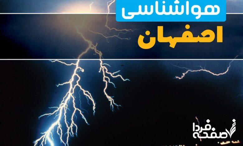 کارشناس مرکز پیش‌بینی اداره کل هواشناسی اصفهان خاطرنشان کرد: برای امروز آسمان استان صاف در ساعات بعدازظهر رشد ابر و دربرخی مناطق غربی اصفهان رگبار پراکنده و رعد و برق، وزش باد به نسبت شدید و احتمال گرد و خاک وجود دارد.