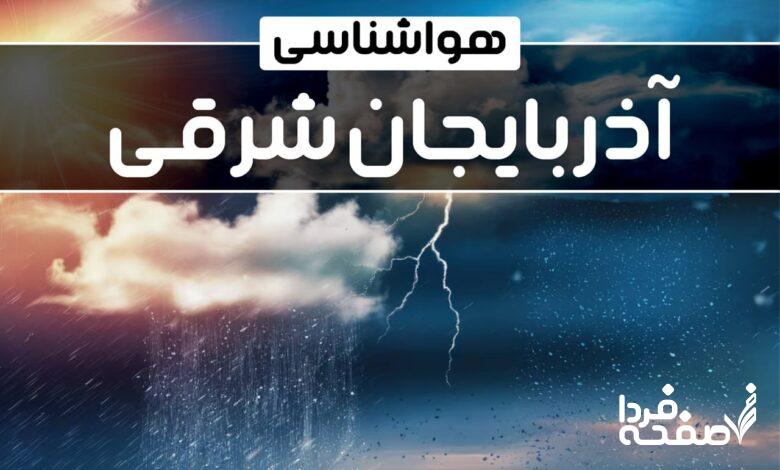 طبق پیشبینیهای سازمان هواشناسی، وضعیت جوی استان آذربایجان شرقی در این روز، بهطور کلی نسبتاً گرم، خشک و با آسمانی صاف تا کمی ابری خواهد بود.