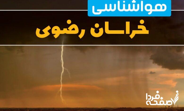 در مناطق مرتفع و نیمهشرقی استان، به ویژه در شهرستانهای نیشابور، سبزوار، کاشمر، تربتحیدریه و قوچان، افزایش ابر، وزش باد شدید لحظهای و احتمال بارشهای پراکنده همراه با رعد و برق پیشبینی میشود.