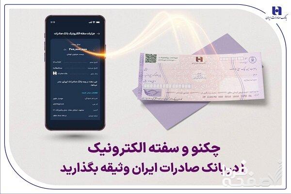 شرایط صدور و پذیرش سفته و چک الکترونیک به عنوان وثیقه تسهیلات و تعهدات در بانک صادرات ایران مهیا شد.