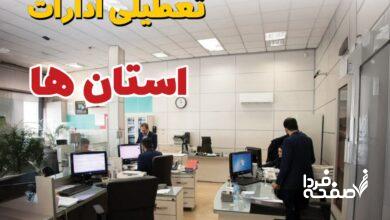 اطلاعیه تعطیلی ادارات فردا شنبه ۱۳ اردیبهشت ۱۴۰۴ | ادارات کدام استان ها فردا شنبه ۱۳ اردیبهشت ۱۴۰۴ تعطیل است؟
