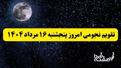 تقویم نجومی پنجشنبه| تقویم همسران پنجشنبه ۱۶ مرداد ۱۴۰۴| تقویم نجومی امروز شانزدهم مرداد ۱۴۰۴