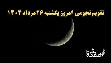 تقویم نجومی یکشنبه| تقویم همسران یکشنبه ۲۶ مرداد ۱۴۰۴| ساعت سعد و نحس امروز بیست و ششم مرداد ۱۴۰۴
